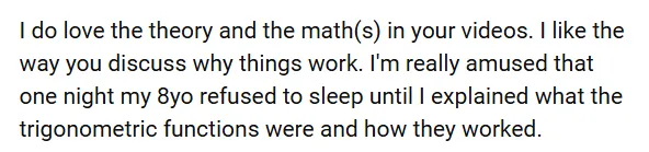 As a middle school teacher making scratch vids for my 10-13 year old students, it's a pleasure to have high level stuff being made that helps me as a teacher learn how to do things! I feel like there's only 3-5 other people consistently making high level Scratch content for advanced folks. Love it! :D